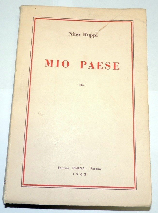 Nino Ruppi, Mio paese. Capitoli, Editrice Schena, Fasano 1963, pp. 125, cm 22, br. ed. Volume su topografia, costumi, folclore, storie di Fasano (Br). Tracce d'uso alla copertina.