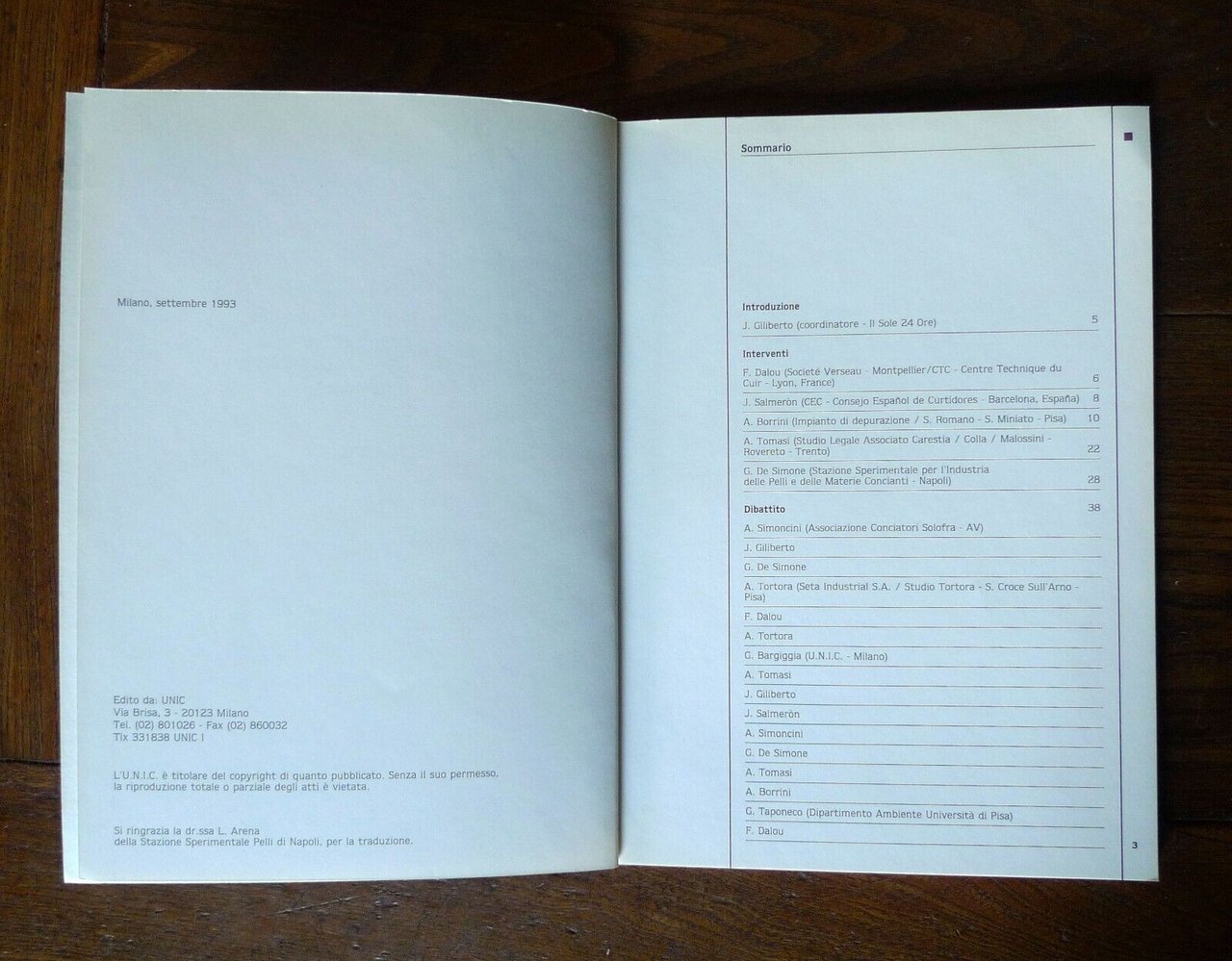 - LIMITI NELLA DEPURAZIONE DELLE ACQUE CONCIARIE:È ORA CHE L'ITALIA ENTRI IN EUROPA.ATTI DEL CONVEGNO,Bologna, 13 maggio 1993.UNIC, Milano 1993,brossura, 24x17 cm., pp.48,peso: g.200