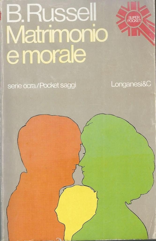Bertrand Russell, Matrimonio e morale, traduzione di Gianna Tornabuoni, Longanesi e C. Milano 1977, seconda ed., terza rist., pp. 243, cm 18, br. ed. Collana I Super pocket, n. 190. Serie Pocket saggi (serie ocra), n. 35. Titolo originale: Marriage and Morals. Prima carta bianca mancante, leggere tracce d’uso, minima ingiallitura della carta, ma nel complesso buona copia, perfettamente fruibile e con interni puliti.