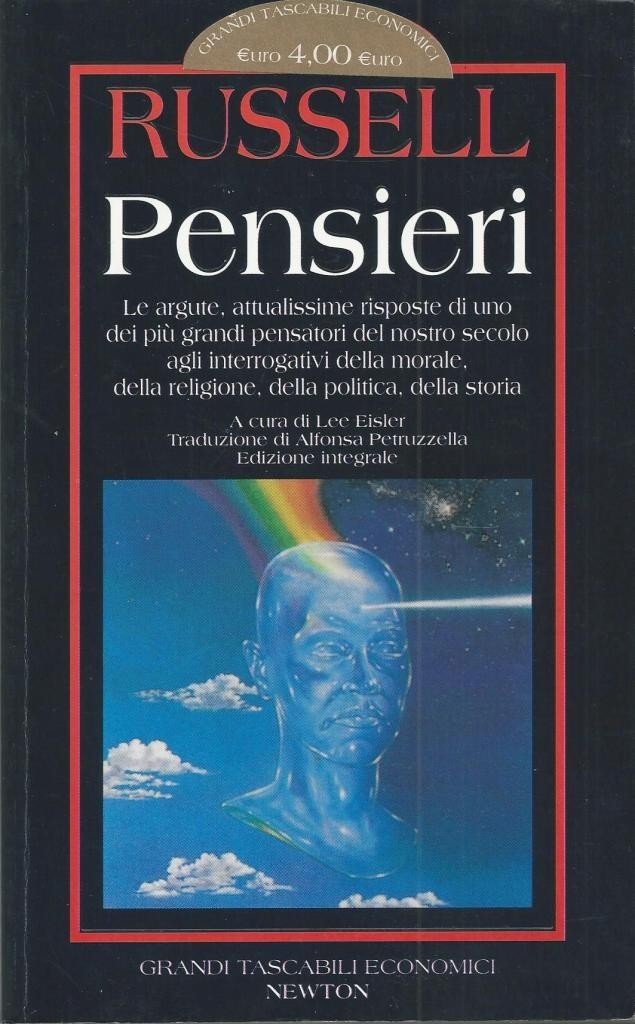 Bertrand Russell, Pensieri, a cura di Lee Eisler, edizione integrale, Newton Compton editori, Roma 1997, pp. 247, cm 22, br. ed. Collana Grandi Tascabili Economici, vol. 437. Titolo originale: The quotable Bertrand Russell. Traduzione di Alfonsa Petruzzella. Minima ingiallitura della carta, per il resto perfetto.