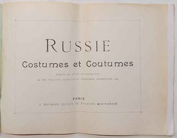 Album in 4° (cm. 31 x 25); pagg. (4) + 8 tavole fotografiche a colori "d'après les clichés photographiques de MM. Pegoff, Mazourine, Scherer, Nabhlotz ecc.; brossura originale figurata. Lieve traccia di piega, ma ottimo. VG-. ** La serie "Autour du monde" nacque nel 1896 (vedere Bibliotheque Nationale de France) e i fascicoli pubblicati furono 75. La caratteristica che rende speciale "Autour du monde" sono le tavole fotografiche a colori, che all'epoca erano una rarità, stampate su carta lucida di qualità e realizzate probabilmente anche con ritocchi all'acquerello. L'effetto è molto suggestivo, pur mantenendo intatti il realismo e il valore documentario.