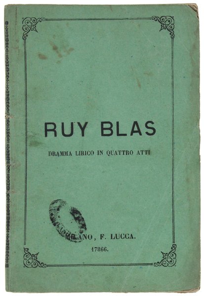 RUY BLAS. Dramma lirico in 4 atti di Carlo D'Ormeville, musica di Filippo Marchetti. Da rappresentarsi al Teatro Regio di Torino Carnevale e Quaresima 1870-71.