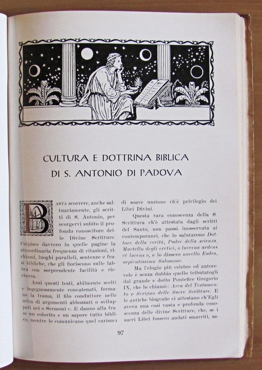 A cura della Provincia Patavina di S. Antonio. S. Antonio di Padova, Dottore Evangelico. Collana di Studi Religiosi a cura dello Studio Teologico per Laici "S. Antonio Dottore" N.1. Illustrazioni fotografiche in b/n n.t., anche a piena pagina. Il Messaggero di S. Antonio - Padova, I edizione 1946. Brossura editoriale con piccolissima imperfezione all'angolino alto esterno del piatto.17,5x25; pp.214. Ottimo stato , Ottimo (Fine)
