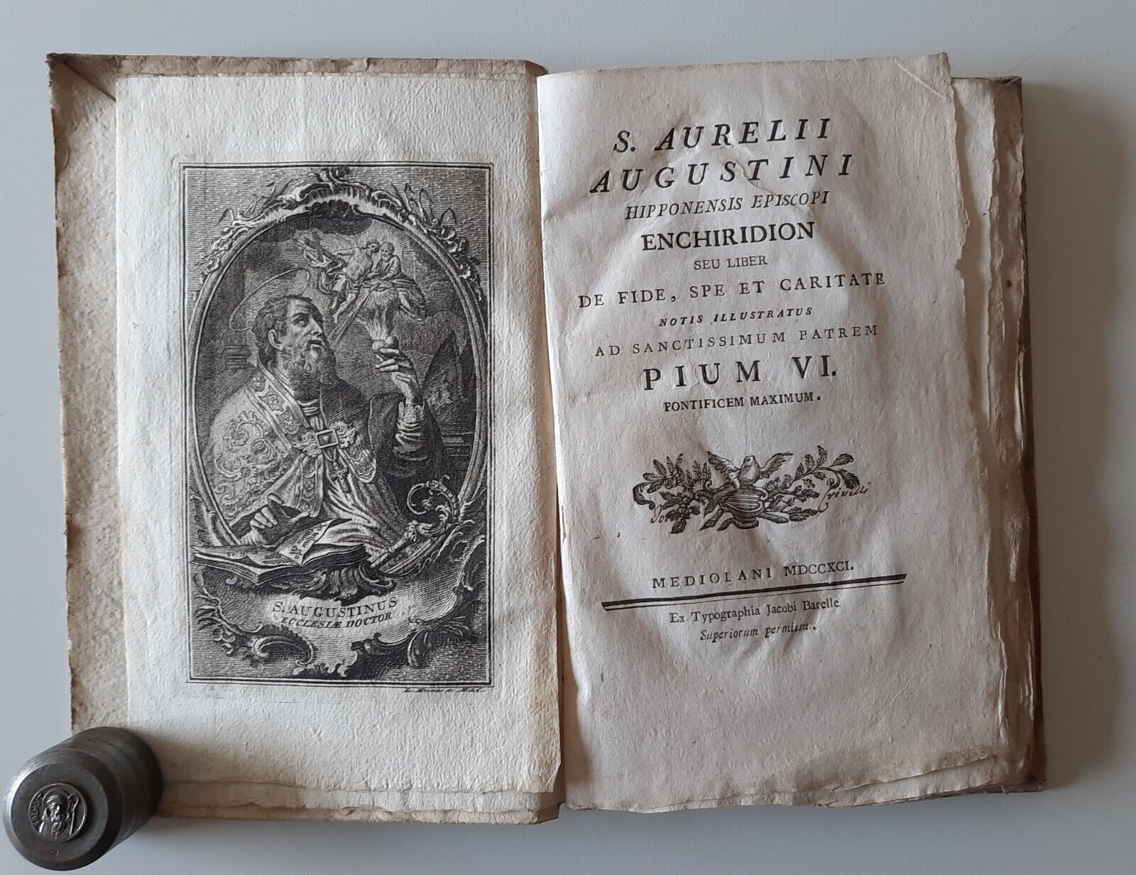 S. AURELII AUGUSTINI ENCHIRIDION MEDIOLANI 1791 JACOBI BARELLE