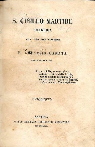 S. Cirillo Martire - Tragedia per uso dei collegi