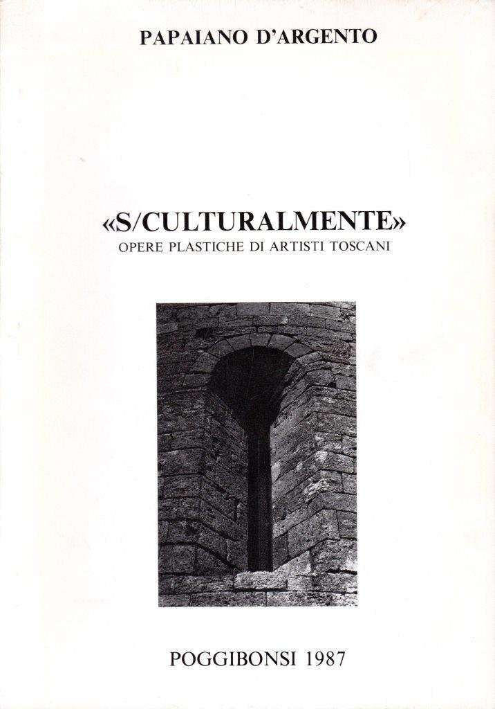 S/Culturalmente. Opere plastiche di artisti toscani, prima edizione 1987, formato 16,5 x 23,5.<BR>Copertina morbida di colore bianco con piccola illustrazione al piatto anteriore (Monofora dell'abside della chiesa romanica) con titoli in nero. Volume a cura di Dino Pasquali. All'interno numerose tavole illustrate in b/n. <BR>Ottime condizioni.
