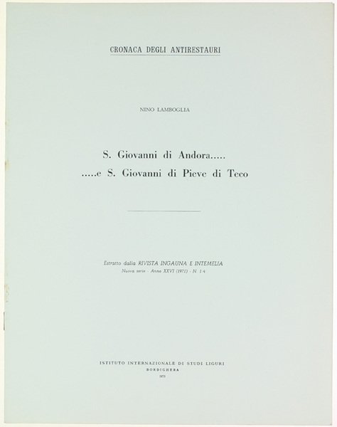 S.GIOVANNI DI ANDORA. e S.GIOVANNI DI PIEVE DI TECO. Cronaca degli antirestauri
