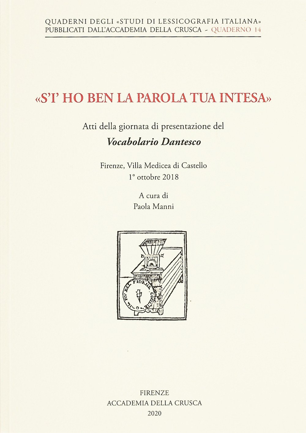 «S'i' ho ben la parola tua intesa». Atti della giornata di presentazione del Vocabolario Dantesco (Firenze, Villa Medicea di Castello, 1° ottobre 2018)