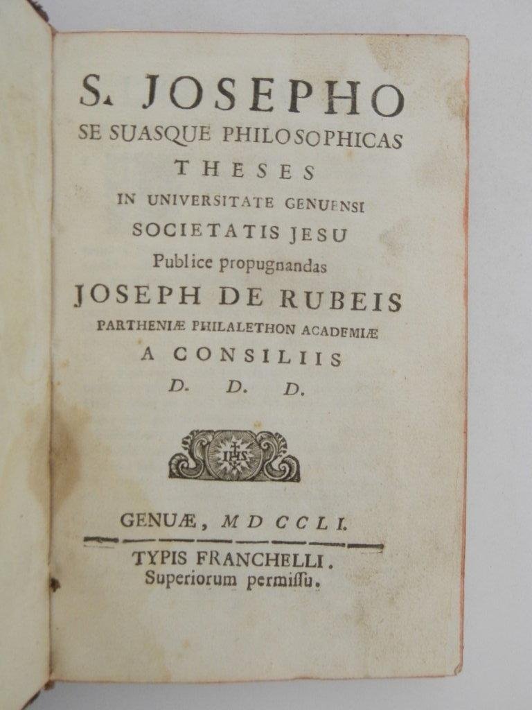 S. Josepho se suasque philosophicas theses in Universitate Genuensi Societatis Jesu publice propugnandas Joseph De Rubeis