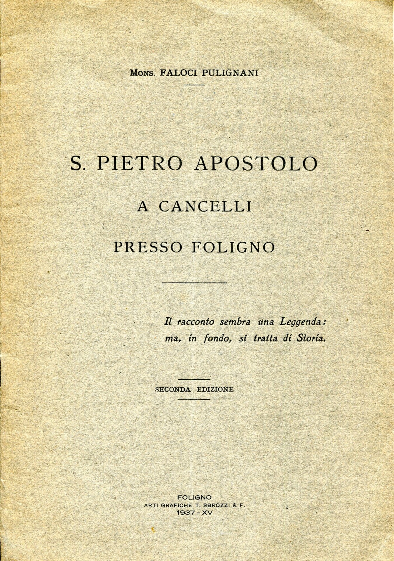S. Pietro Apostolo a Cancelli presso Foligno. Il racconto sembra una Leggenda: ma, in fondo si tratta di Storia. Seconda edizione