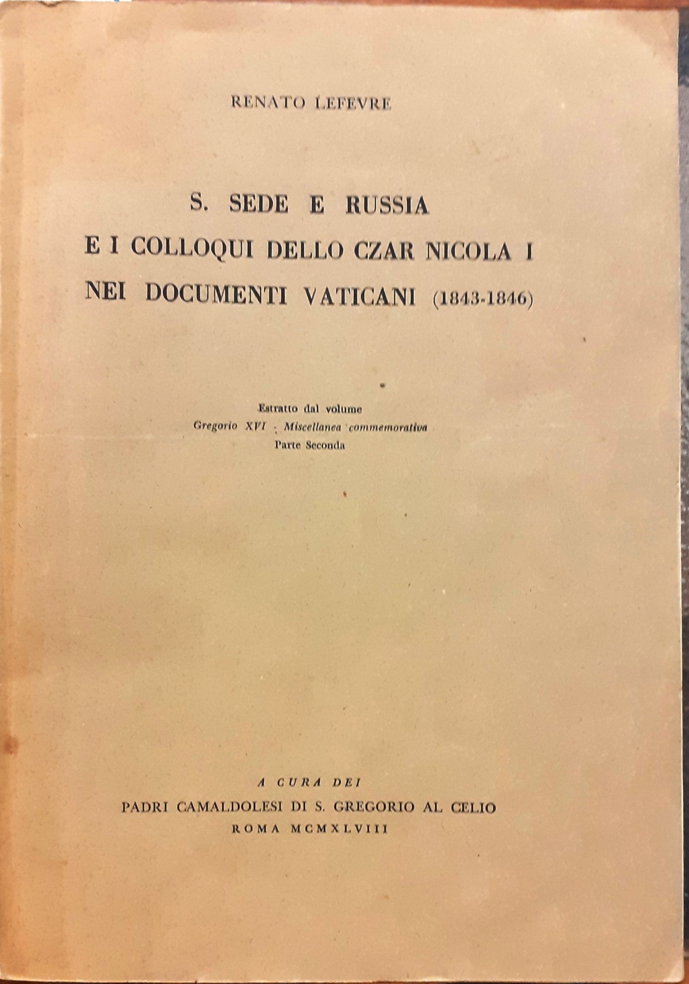 S. SEDE E RUSSIA E I COLLOQUI DELLO CZAR NICOLA I NEI DOCUMENTI VATICANI (1843-1846).