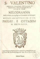 ristampa anastatica dell'originale del 1725. nel testo - melodramma - vengono narrate la predicazione e il martirio del Santo- patrono di Terni
