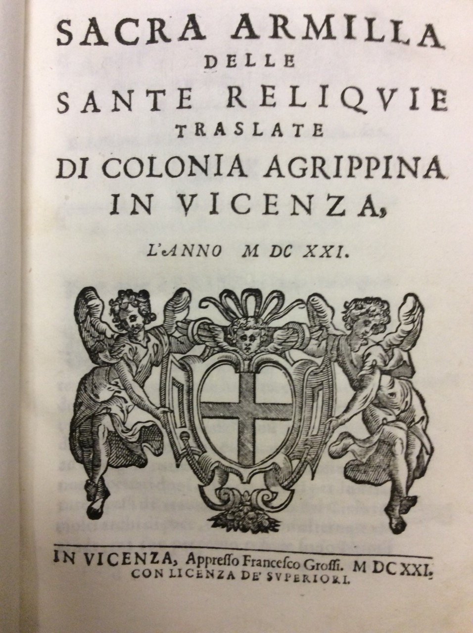 SACRA ARMILLA DELLE SANTE RELIQUIE TRASLATE DI COLONIA AGRIPPINA IN VICENZA L'ANNO MDCXXI.