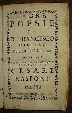 Sacre poesie di D. Francesco Cirillo Prete della Città di Taverna. Dedicate all’Eminentiss. e Reverendiss. Signor Cardinale Cesare Rasponi