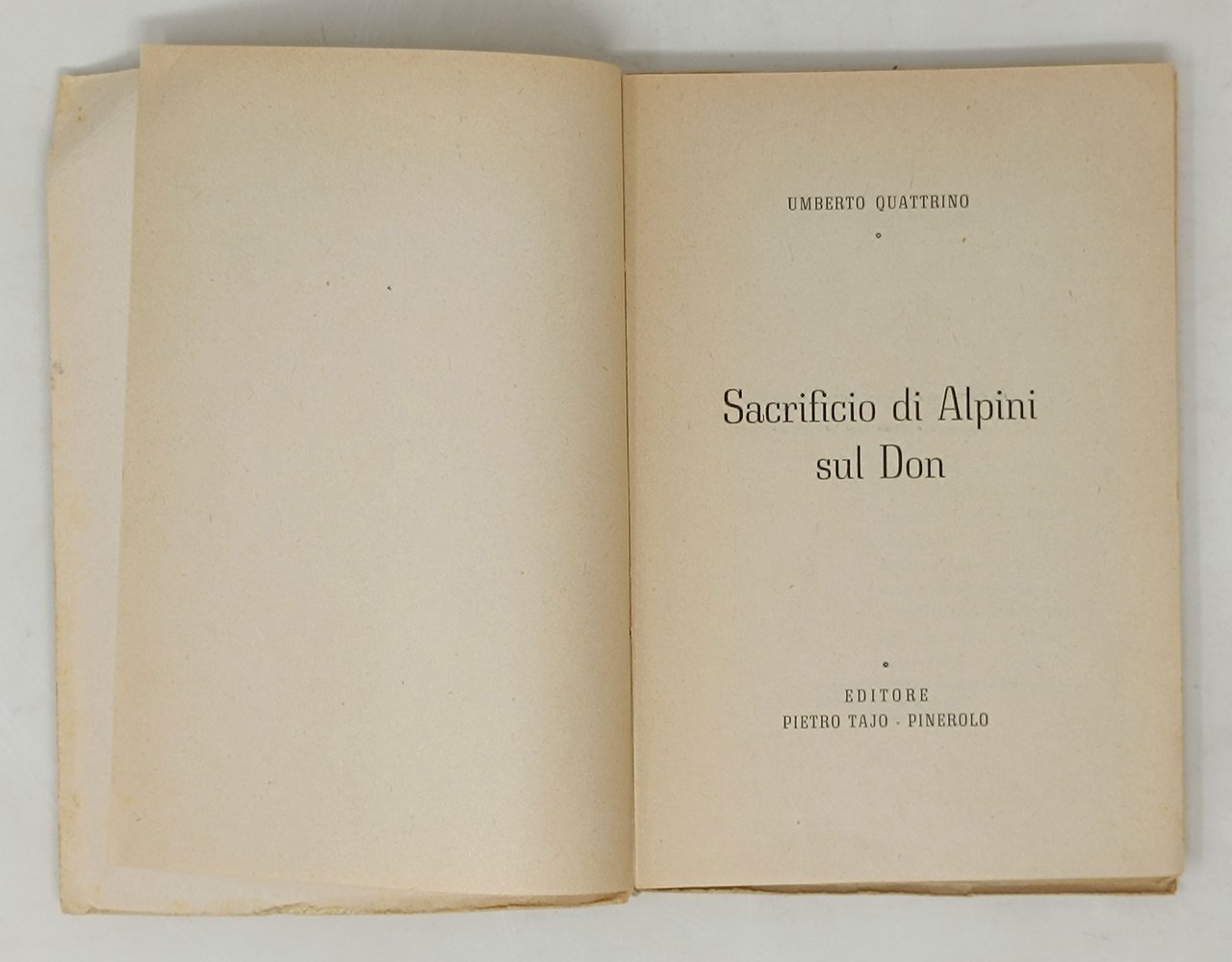 Prefazione del Generale Emilio Faldella. Stampato nella Scuola Tipografica dei Padri Giuseppini di Pinerolo nel mese di agosto 1949. Formato: 14 x 20 cm circa. Pagine: 228 + [4]. Stato di conservazione: buon esemplare. Privo di scritte o altri segni nel testo. Nessun timbro. Brossura editoriale flessibile. Manca la soraccoperta. Con autografo a penna dell'autore sulla prima pagina bianca. 'Questo diario di guerra narra in succinto la breve storia del 1° Battaglione Complementi del 1° Reggimento Alpini, partito da Garessio il 29 dicembre 1942 e finito in terra di Russia dove, a tre soli giorni dal suo arrio, prima ancora di prendere contatto col proprio Reggimento, venne attaccato e quasi completamente distrutto da forze corazzate russe penetrate nelle immediate retrovie. [.]'.