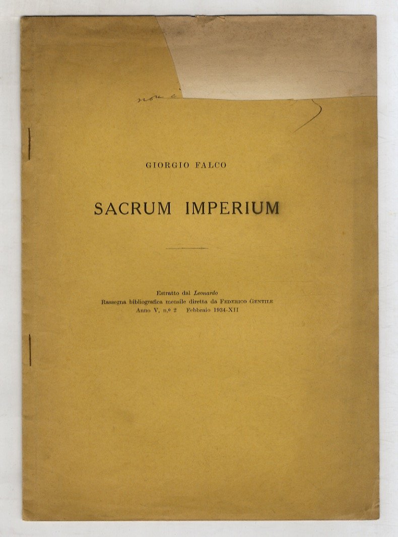 Milano, 1934, in-4, brossura editoriale (asportato l'angolo superiore destro della cop. anteriore per eliminare una firma di possesso), pp. numerate da 49 a 54. Estratto dal "Leonardo" Rassegna bibliografica mensile diretta da Federico Gentile.