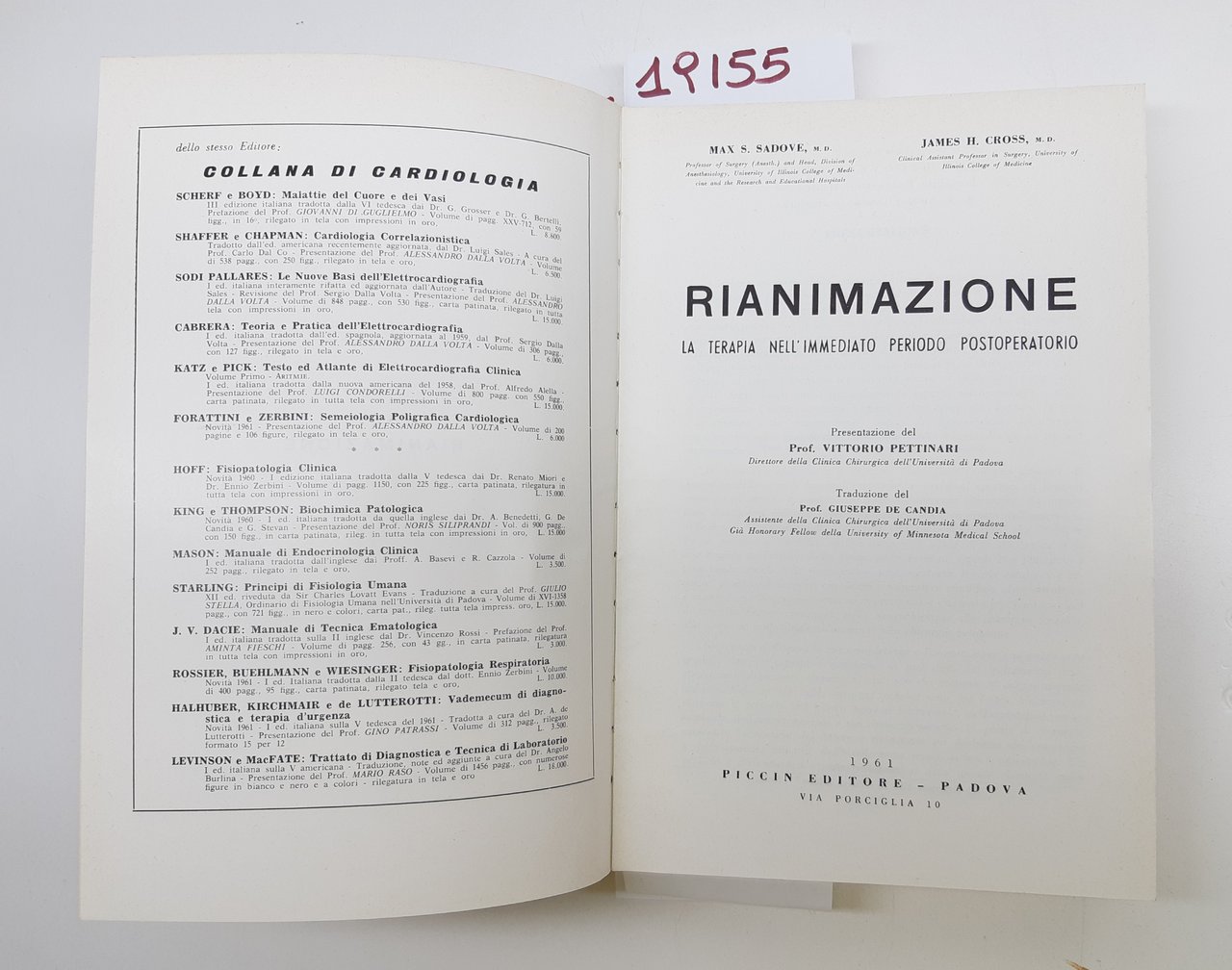 Sadove Cross Rianimazione la terapia nell'immediato periodo post-operatorio Piccinin 1961