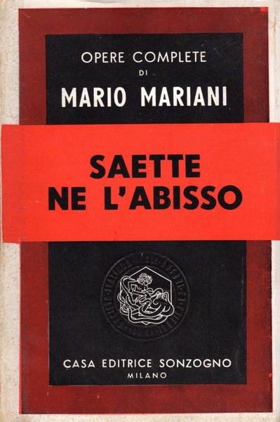 Saette ne l'abisso, edizione dicembre 1949, pp. 309, formato 12 x 18.<BR>Copertina morbida di colore nero e rosso con titoli in bianco e nero al piatto anteriore e in nero sul dorso.<BR>Buone condizioni.
