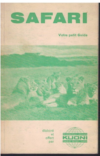 Piccola brossura tascabile vintage in francese. Guida ai safari Aficani. Opera ben conservata, mormali tracce del tempo, interno molto buono