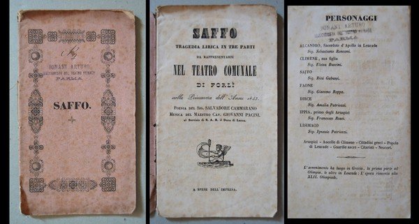 *SAFFO Tragedia lirica in tre parti da rappresentarsi nel Teatro Comunale di Forlì. Primavera 1843