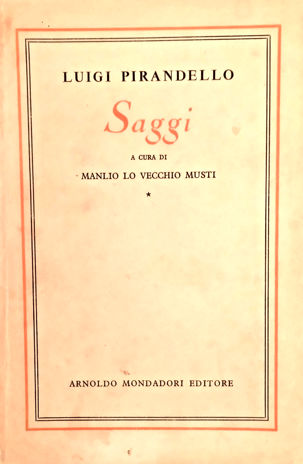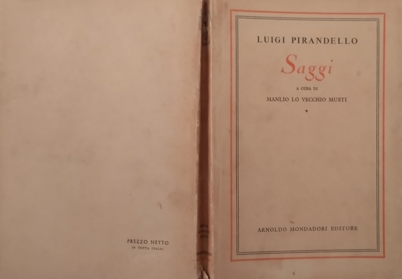 SAGGI di Luigi Pirandello. A cura di Manlio Lo Vecchio Musti. Mondadori Editore, 1952 . 410 pagine. Copertina editoriale in brossura. Stato di conservazione: molto buono (pagine normalmente ingiallite, piccoli strappi ai margini dei piatti) Libro usato saggistica
