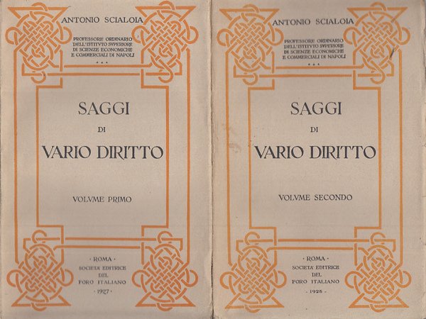 Saggi Di Vario Diritto Volume Primo Volume Secondo
