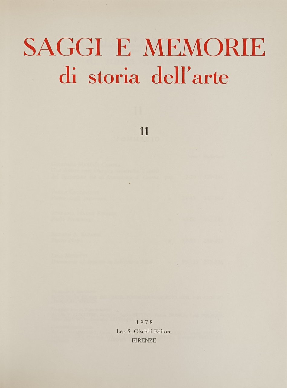 SAGGI E MEMORIE DI STORIA DELL' ARTE. 11