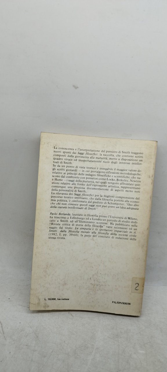 adam smith saggi filosofici paolo berlanda adam smith. , franco angeli -- italiano, 244 °°brossura