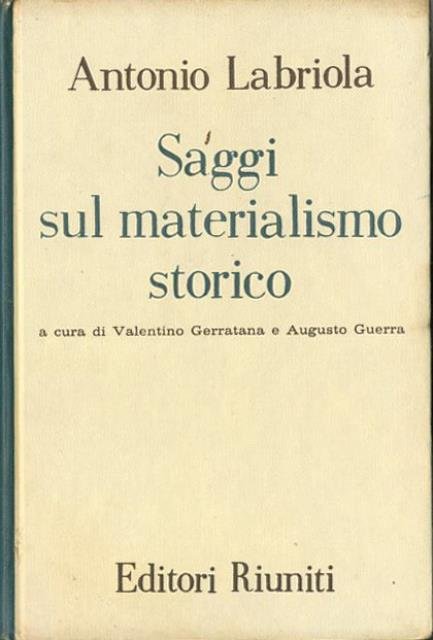 463 p. ; 22 x 15 cm. Pensiero e azione socialista. Nati dall’intento di far conoscere in forma divulgativa il pensiero autentico dei fondatori del «socialismo scientifico», ancora ignorato nell’Italia di fine Ottocento, i Saggi labrioliani sulla concezione materialistica della storia, elaborati in dialogo epistolare con Friedrich Engels, divennero il primo autorevole contributo italiano al marxismo teorico. Un’opera critica e aperta, che si colloca all’origine di ogni interpretazione antidogmatica delle idee di Marx. A cura di Valentino Gerratana e Augusto Guerra. Legatira editoriale, coperta in cartone rigido con titolo impresso al piatto e al dorso. Segni del tempo ai risvolti, al taglio e alle pagine interne (fioriture e ingiallimento della carta), per il resto libro accettabile, da studio. Codice libreria 5693.