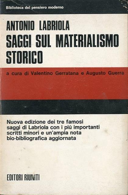 3. ed. riv. e aggiornata. 525 p. ; 22 x 15 cm. Biblioteca del pensiero, 11. Nati dall’intento di far conoscere in forma divulgativa il pensiero autentico dei fondatori del «socialismo scientifico», ancora ignorato nell’Italia di fine Ottocento, i Saggi labrioliani sulla concezione materialistica della storia, elaborati in dialogo epistolare con Friedrich Engels, divennero il primo autorevole contributo italiano al marxismo teorico. Un’opera critica e aperta, che si colloca all’origine di ogni interpretazione antidogmatica delle idee di Marx. Nuova edizione dei tre noti saggi di Labriola con i più importanti scritti minori e un'ampia nota bio-bibliografica aggiornata. A cura di Valentino Gerratana e Augusto Guerra. Brossura editoriale, coperta in cartoncino flessibile colorato (b-n e rosso), con titolo impresso al piatto e al dorso. Qualche leggero segno del tempo (ingiallimento della carta) per il resto esemplare integro. Codice libreria 6184.