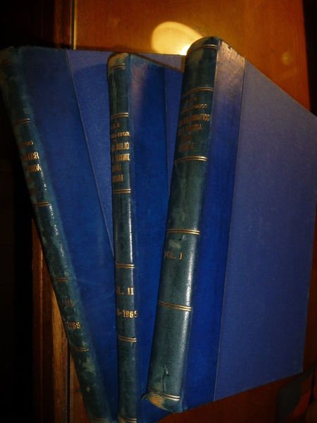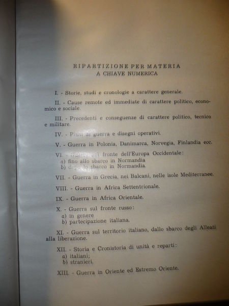DESCRIZIONE: Ed. Ufficio Storico Stato Maggiore dell'Esercito, Roma, 1955, 1966 e 1969. In 8°, leg. ed. mezza pelle blu con tit. oro al dorso, pp. 524 + 243 + 293. I volumi recensiscono tutte le opere della WWII e ad inizio di ogni singolo vol., le opere sono trattate per argomento, e poi in rigoroso ordine alfabetico (per autore) vengono descritte. Opera FONDAMENTALE per studiosi e collezionisti. Seconda edizione aggiornata e corretta dell'opera, originariamente pubblicata nel 1949, che vede l'elenco di tutte le pubblicazioni italiane ed internazionale sull'argomento della Seconda Guerra Mondiale. Vol. I: Opere fino al 1954. Vol. II: Opere fra il 1955 e il 1965; Vol. III: Opere fra il 1966 e il 1968. CONDIZIONI: Buone. Volumi impreziositi da una bella rilegatura che fu fatta per un alto ufficiale. Normalmente questi libri sono in brossura cartonata. Dorso leggermente consumato. PESO / WEIGHT: 2200 gr. without package