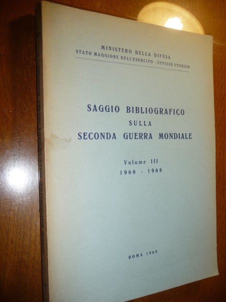 DESCRIZIONE: Ed. SME - Ufficio Storico, Roma, 1969. In 8°, br. ed. azzurra, pp. 293. Il libro recensisce tutte le opere della WWII e ad inizio di ogni singolo vol., le opere sono trattate per argomento, e poi in rigoroso ordine alfabetico (per autore) vengono descritte. Opera FONDAMENTALE per studiosi e collezionisti. Seconda edizione aggiornata e corretta dell'opera, originariamente pubblicata nel 1949, che vede l'elenco di tutte le pubblicazioni italiane ed internazionale sull'argomento della Seconda Guerra Mondiale. Vol. III: Opere fra il 1966 e il 1968. CONDIZIONI: Ottime. Dorso ingiallito. PESO / WEIGHT: 1190 gr. without package