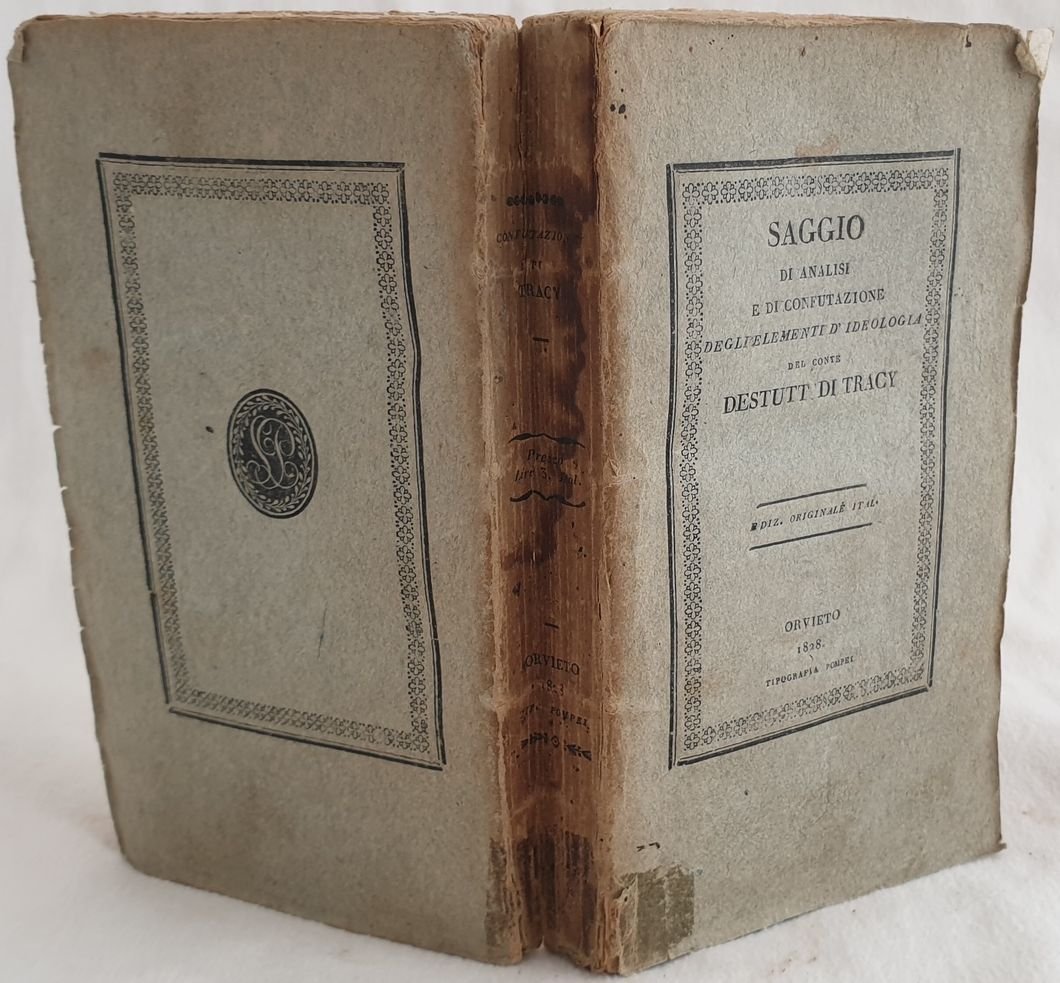 SAGGIO DI ANALISI E DI CONFUTAZIONE DEGLI ELEMENTI D'IDEOLOGIA DEL CONTE DESTUTT DI TRACY RISPETTO AI PRINCIPI E CONSEGUENZE MORALI RIPROVATE DAL BUONS ENSO DALLA RAGIONE E DALL'AUTORITA SPECIALMENTE DI LOCKE E DI CONDILLAC
