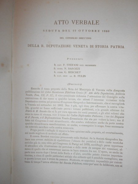 MARINELLI, GIOVANNI. Venezia, a spese della Società (Naratovich),1881.