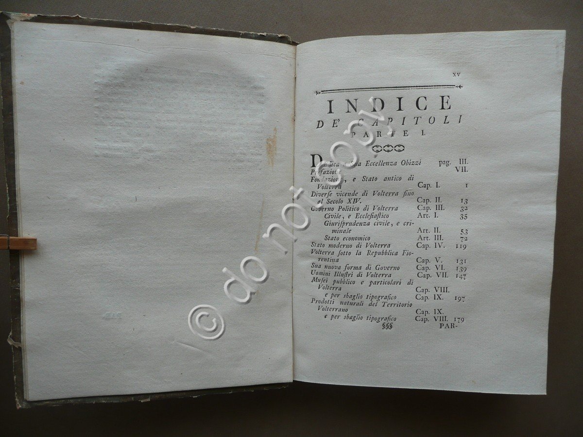 Saggio di Ricerche Sopra lo Stato Antico Moderno di Volterra Giachi Firenze 1786