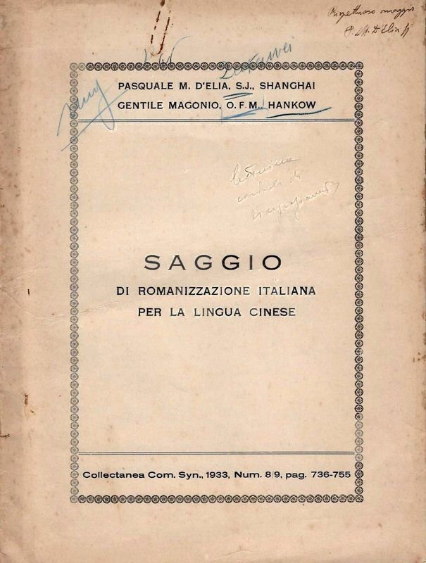 Saggio di romanizzazione italiana per la lingua cinese (Estrattoi 1933).