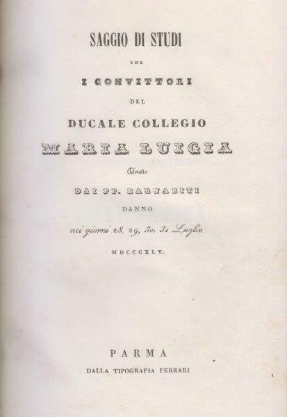 Saggio di studi che i convittori del ducale collegio Maria Luigia diretto dai PP. Barnabiti danno nei giorni 28, 29, 30, 31 luglio 1845