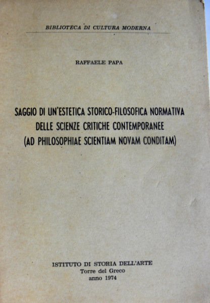SAGGIO DI UN'ESTETICA STORICO-FILOSOFICA NORMATIVA DELLE SCIENZE CRITICHE CONTEMPORANEE. (AD PHILOSOPHIAE SCIENTIAM NOVAM CONDITAM)