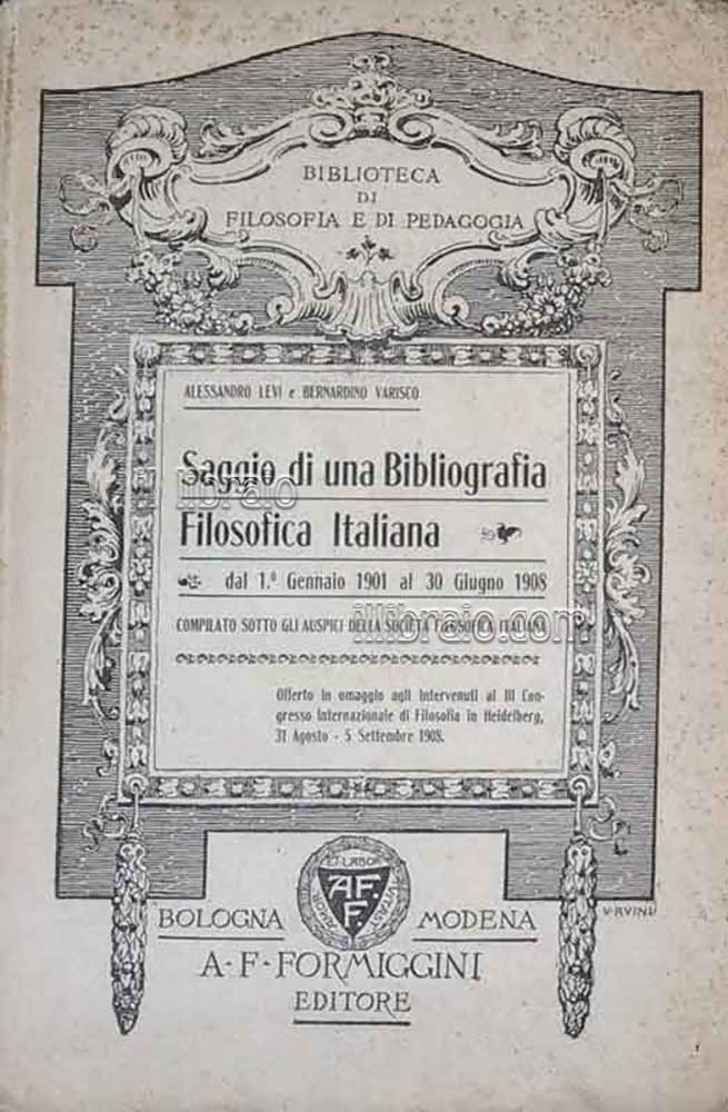 in 8°; pp. 150; leg.; copertina ill. da V. Ruini. Bibliografia dal 1 gennaio 1901 al 30 giugno 1908 compilato sotto gli auspici della società filosofica italiana (rari segni a matita su poche pagine, molto buono)