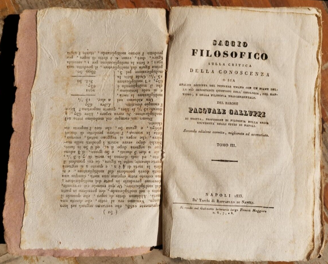 SAGGIO FILOSOFICO di Pasquale Galluppi volume III 1833 libro antico filosofia