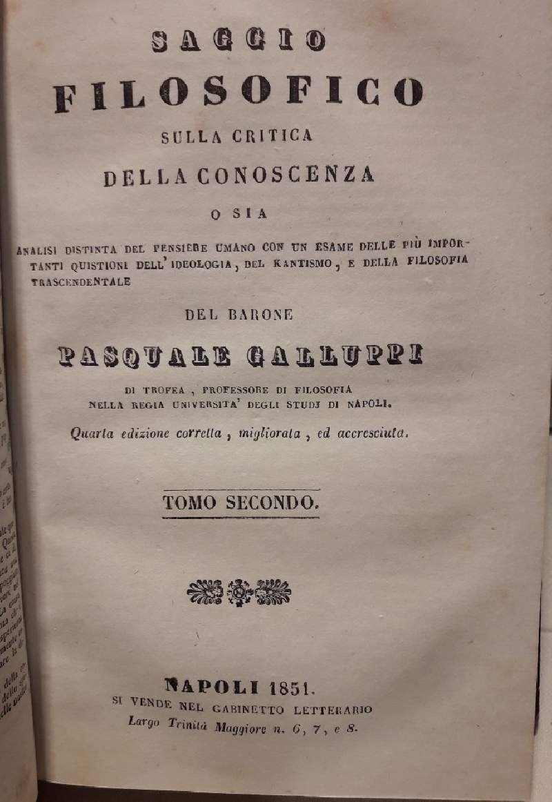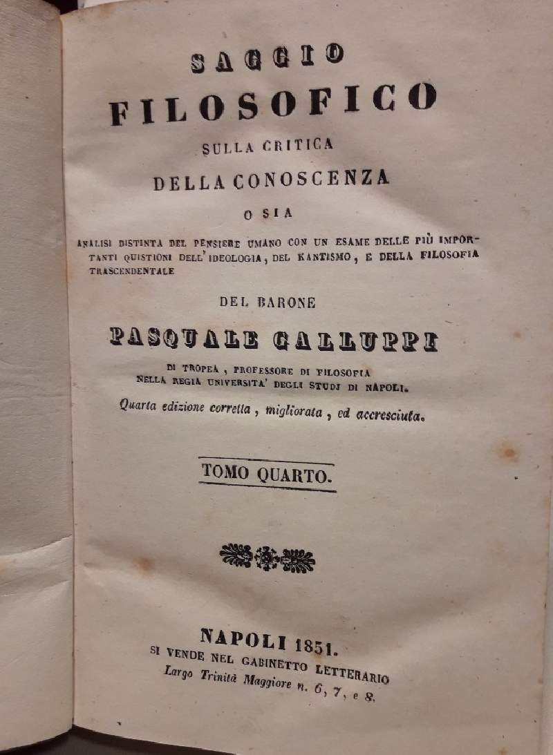 SAGGIO FILOSOFICO SULLA CRITICA DELLA CONOSCENZA-6 TOMI IN 2 VOL.(1850)