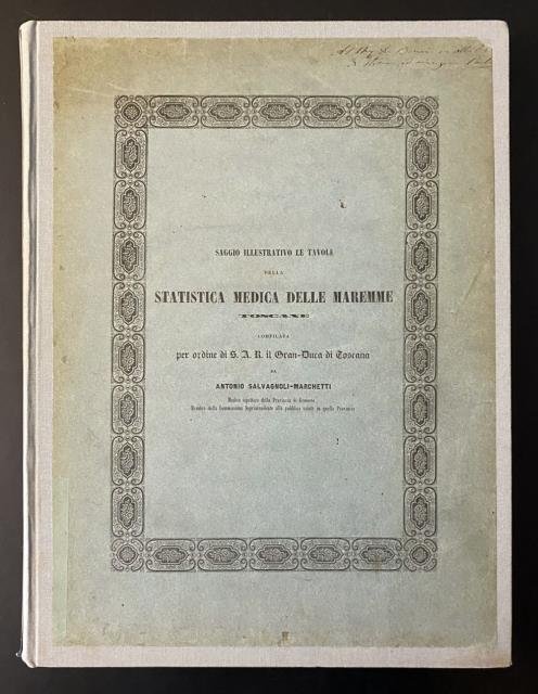 Saggio illustrativo le Tavole della Statistica Medica delle Maremme Toscane. Compilata per ordine di S. A. R. il Gran - Duca di Toscana. Da Antonio Salvagnoli - Marchetti Medico Ispettore della Provincia di Grosseto. Membro della Commissione Soprintendente alla pubblica salute in quella Provincia.