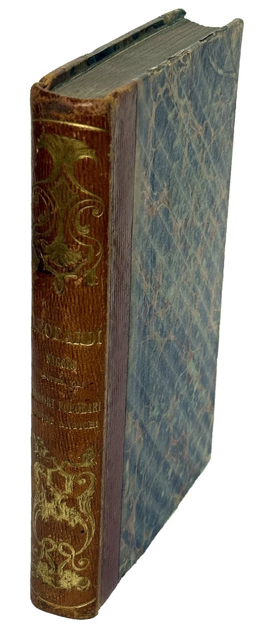 In 8vo (mm. 180x114). Pp. xix, [1 bianca], 312, [4]. Graziosa legatura del tempo in mezza pelle con titolo e ricchi fregi in oro al dorso, piatti in carta marmorizzata (minime spellature e lievi mancanze). Macchiette al margine inferiore bianco delle pp. 11-15, qualche sporadica fioritura.