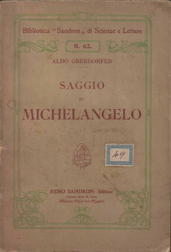 In-16° (cm 19x 12,7), pp. (8), 192, più 24, (8) di catalogo editoriale in fine, copertina editoriale. Alla copertina anteriore, piccola etichetta recante il numero "49" manoscritto a penna (vedi foto), numero ripetuto anche nella parte inferiore del dorso. Piccoli difetti alla cerniera anteriore; prima pagina bianca incollata alla controcopertina anteriore. Arrossature alle pagine, dovute al tipo di carta, per il resto buon esemplare. N. 62 nella "Biblioteca Sandron di Scienze e lettere".