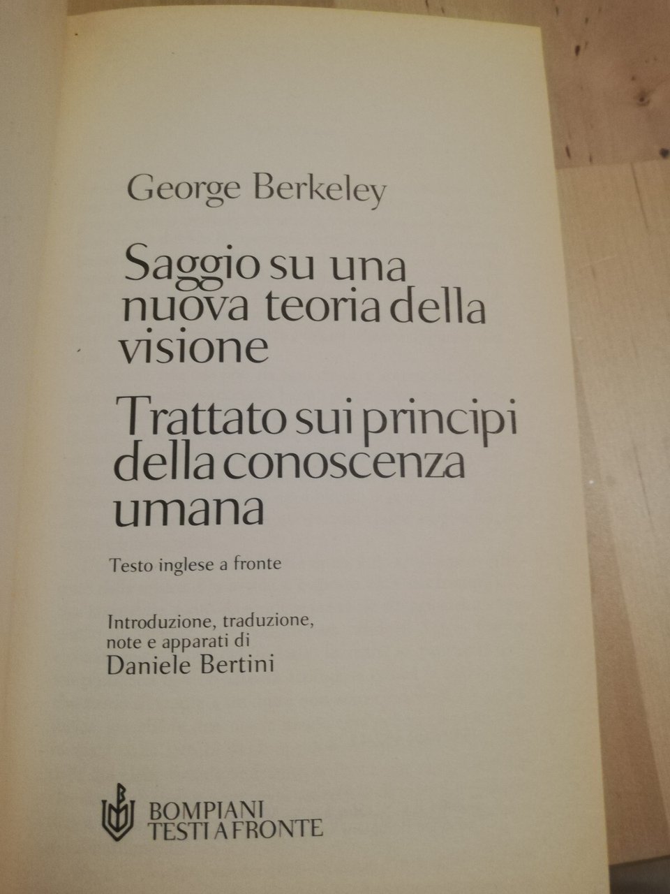 Saggio su una nuova teoria della visione, George Berkeley, Bompiani, 2004