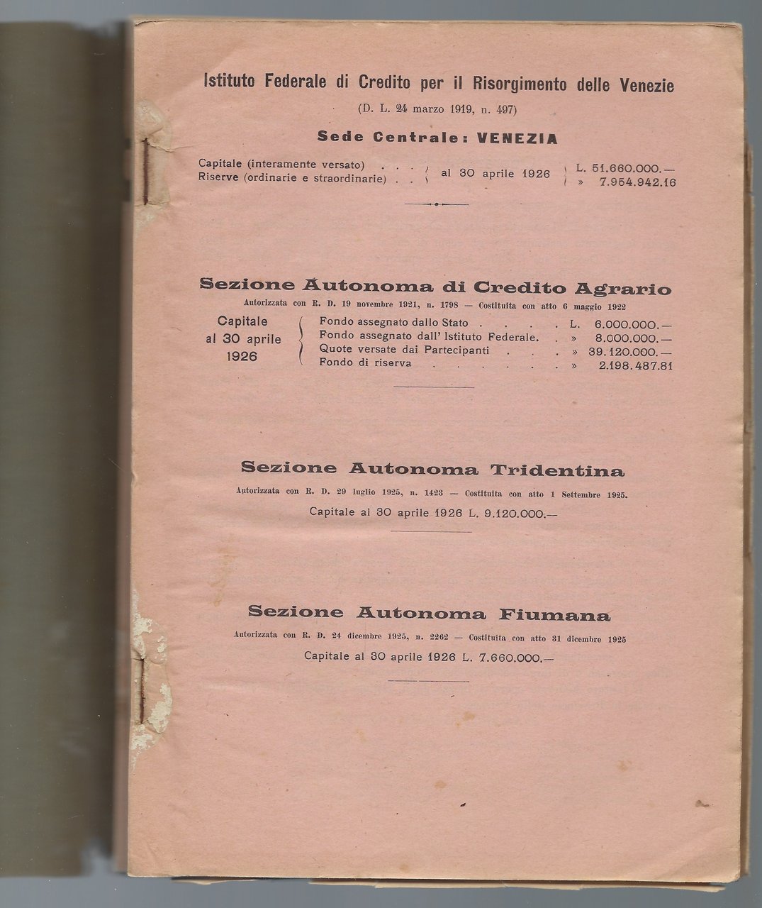 "Istituto Federale di Credito per il Risorgimento delle Venezie" Quaderno XLLVIII. Anno V. N°6. Giugno 1926: Saggio sull'ordinamento adriatico QUADERNO XLVIII