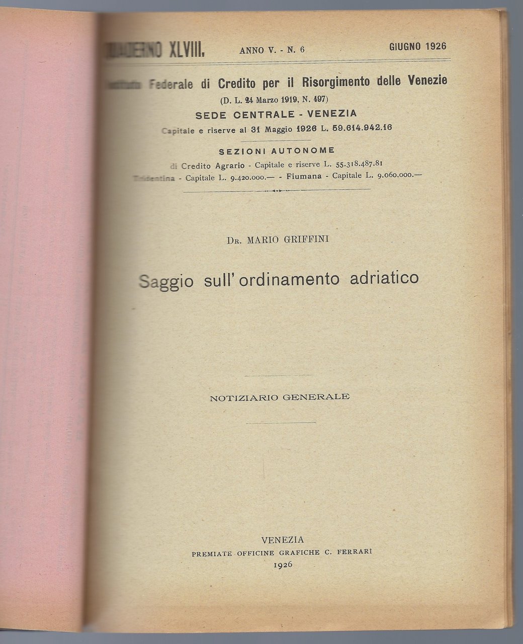 8 tavole lit. rip. f.t. con carte dei porti di Trieste, Venezia, Marghera, Fiume e ferrovie dal Danubio al mare.