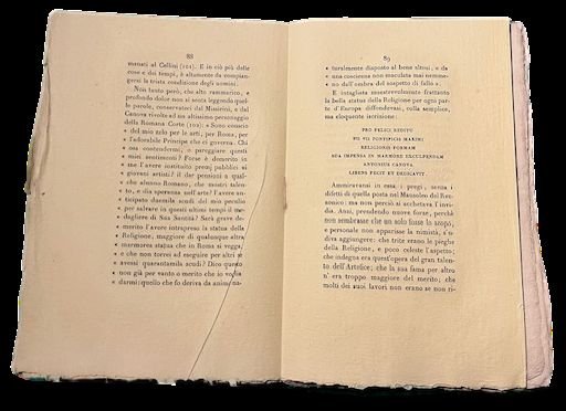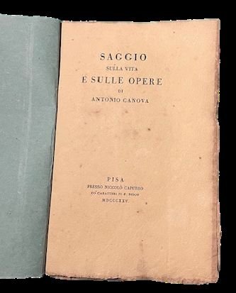 In 4°: (8), 112, L pp. Alcuni esemplari censiti, presentano 6 c. di tav. ma la stragrande maggioranza sembrano non avere mai avuto le tavole. Brossura muta coeva. Esemplare di presentazione dellopera, privo delle carte di tavole, mai aggiunte qua, ma stampato su carta gialla di altissima qualità. Esemplare ancora a fogli chiusi ed in barbe. Giovanni Rosini (Lucignano in Val di Chiana, 24 giugno 1776 Pisa, 16 maggio 1855) è stato un importante storico dellarte, critico, poeta e drammaturgo e scrittore italiano, noto per i suoi studi sullopera di Antonio Canova (Possagno in provincia di Treviso, 1º novembre 1757 Venezia, 13 ottobre 1822) uno degli scultori più celebri dellepoca neoclassica. Rosini sviluppò, fin da giovane, una profonda passione per larte e la cultura, che lo portò a studiare presso le accademie artistiche locali. Grande collezionista darte, nel 1825, Rosini pubblicò il suo lavoro più prestigioso, Saggio sulla Vita e sulle Opere di Antonio Canova, in cui analizzava con grande attenzione le opere del noto scultore, offrendo una prospettiva unica sul suo processo creativo e sulla sua ispirazione. Questo libro non solo contribuì a far conoscere Canova al grande pubblico, ma cementò anche la reputazione di Rosini come esperto di arte neoclassica. Oltre alla sua biografia su Canova, Rosini scrisse numerosi saggi e articoli critici, approfondendo vari aspetti della scultura e dellarte del suo tempo. La sua capacità di coniugare erudizione e passione rende le sue opere ancora oggi fondamentali per gli studiosi dellarte neoclassica. Giovanni Rosini fu anche un appassionato tipografo e pubblicò numerose opere utilizzando i celebri caratteri ideati a Parma dai Fratelli Amoretti insieme a Giovanni Battista Bodoni. In seguito ad una causa fra le due parti, tali caratteri vennero attribuiti ad esclusivo utilizzo al Bodoni nel Ducato di Parma ma fuori dal Ducato, gli Amoretti continuarono ad utilizzare il carattere, oggi conosciuto come bodoniano, stampando in diverse città italiane. Opera rarissima in questa versione di presentazione stampata su carta gialla. Rif. Bibl.: IT\ICCU\IEIE\004430.
