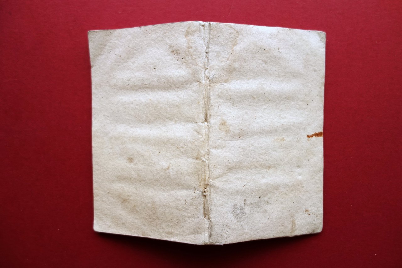 Settecentina, Sagro settenario del glorioso San Nicola da Tolentino Irreperibilità dei dati tipografici dovuti alla mancanza del frontespizio, s. d. (metà '700 circa); cm 14x8,5; pp. 72 con qualche piccolo fregio xilografico, e con un bel ritratto del santo inciso in b/n a piena pagina (vedi foto); legatura d'epoca in cartoncino muto. Condizioni di conservazione Esemplare in buone condizioni con tracce d'uso, mancante del frontespizio; coperta con alcune lievi ombre di gore che interessano in misura minima anche gli interni, senza compromettere la lettura del testo. Qualche piccolo leggero alone. Minime lievi bruniture agli interni. Con un bel ritratto del santo inciso in bianco e nero a piena pagina (vedi foto). Mancanza del frontespizio. SETT11.L19365 N P