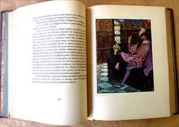 Un volume de format in 8° de 4 ff.; 426 pp.; 3ff. (Justification). Ouvrage illustré de 12 bandeaux, 12 lettrines tirés en noir et or et de 12 planches hors texte en couleurs contrecollées d'après Georges Rochegrosse; en fac-similé une page de manuscrit autographe de l'auteur. Demi reliure à coins en chagrin marron clair; dos à 4 nerfs janséniste; titre doré. Tête dorée. Couverture entièrement conservée. Couverture légèrement passée. Tirage limité à 1024 exemplaires; celui-ci N°465/1000 des exemplaires imprimés sur vergé pur fil. Carteret V?131; Monod II, 1113. Voir les photos.